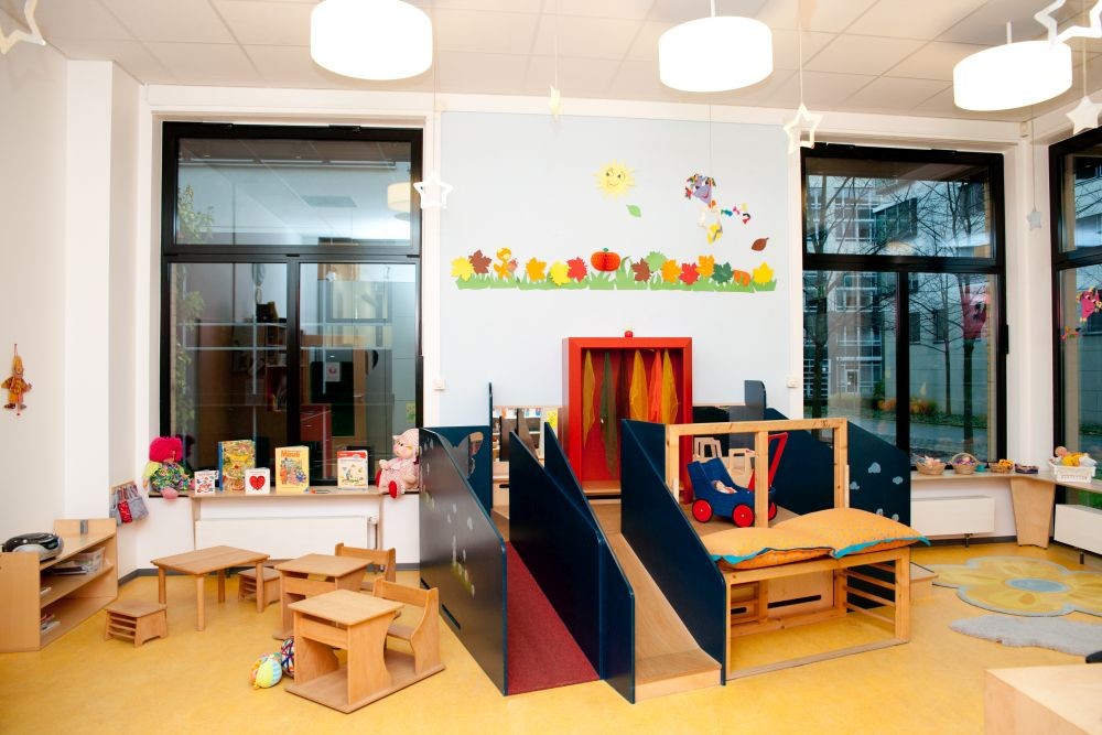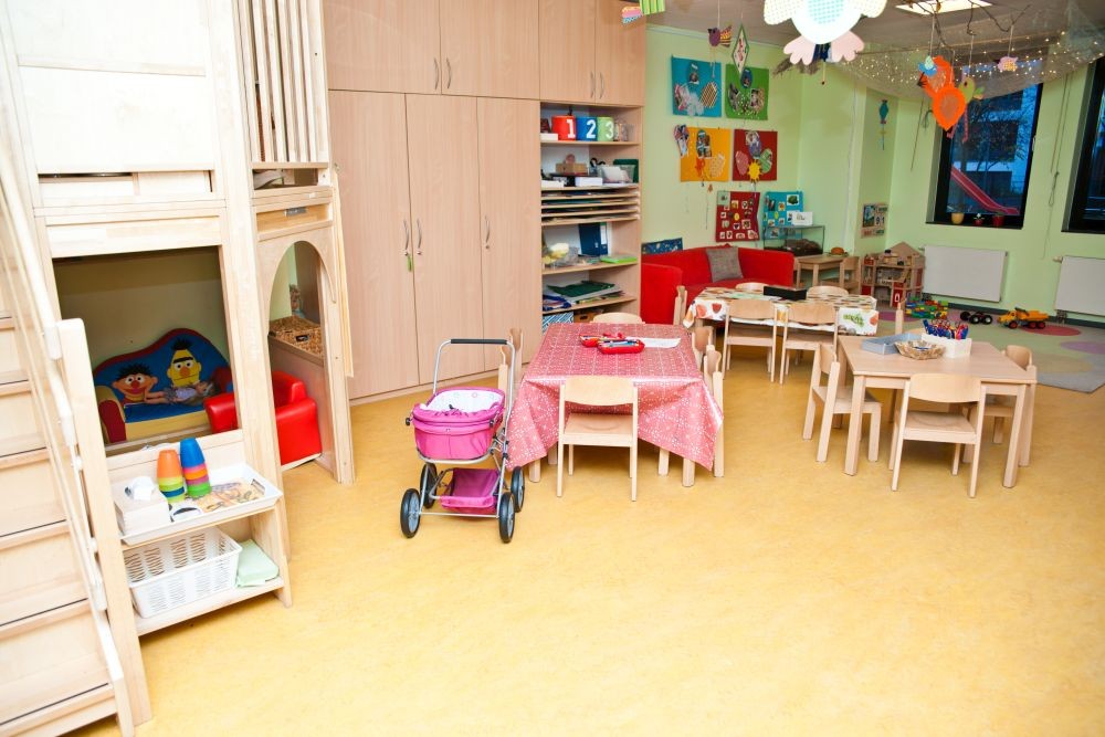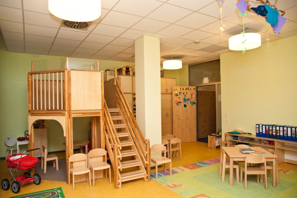 Bietet Platz für 11x Krippenkinder von 1-3 Jahren sowie für 42x Kindergartenkinder von 3-6 Jahren in zwei halb-offenen & altersgemischten Gruppen.